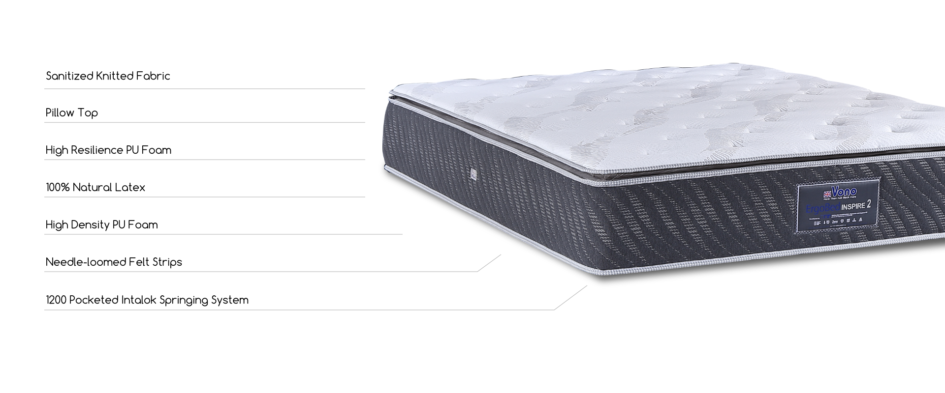 Enhance your sleep experience from day one with our special bedding offer. Every purchase of a Single or Super Single Inspire 2 mattress comes with one (1) complimentary Vono Pillow, while Queen or King size mattresses include two (2) free Vono Pillows. Plus, safeguard your new mattress with a free Vono Mattress Protector, tailored to fit and extend the life of your mattress.