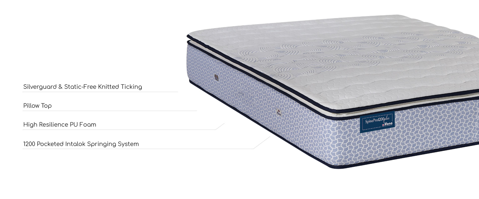 Enhance your sleep experience from day one with our special bedding offer. Every purchase of a Single or Super Single SpinePro 1200 Plus mattress comes with one (1) complimentary Vono Pillow, while Queen or King size mattresses include two (2) free Vono Pillows.